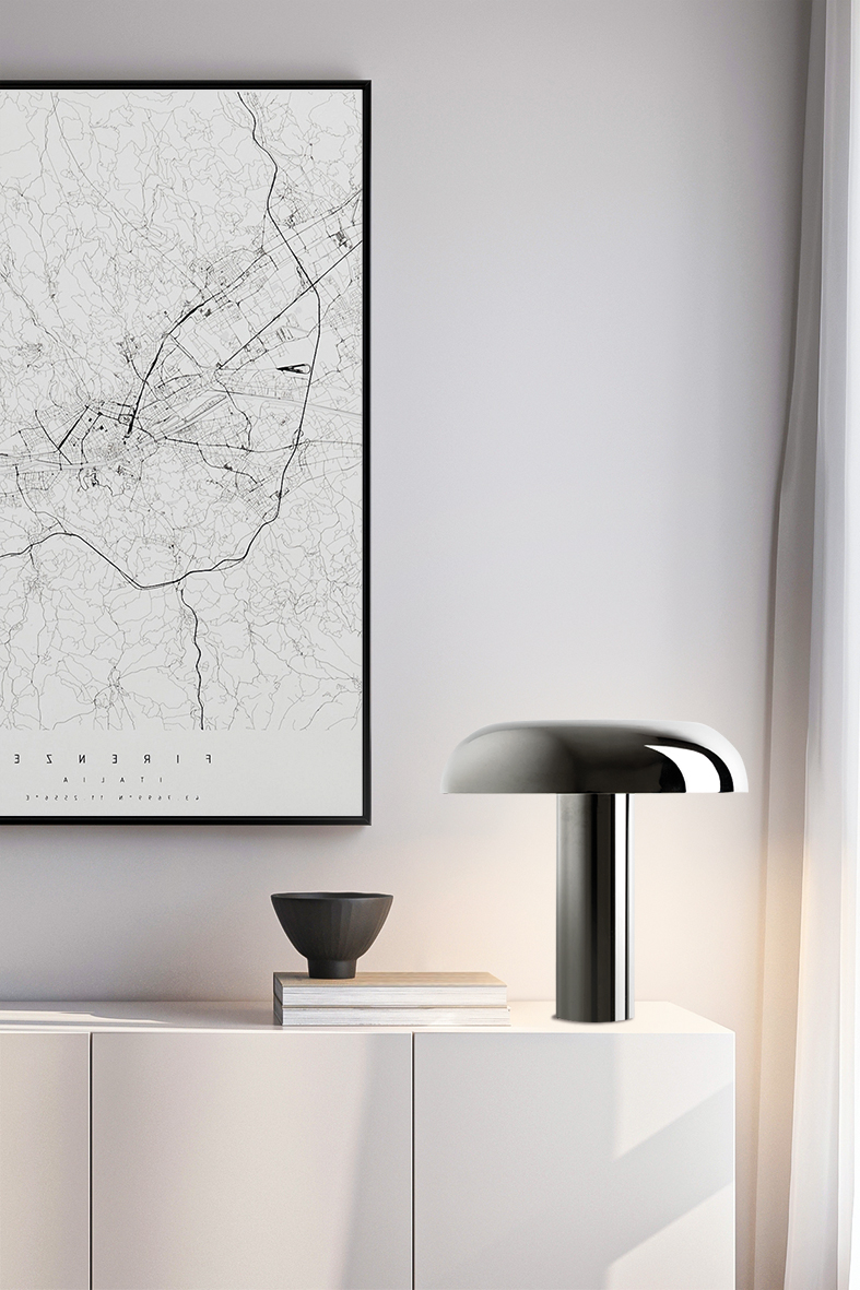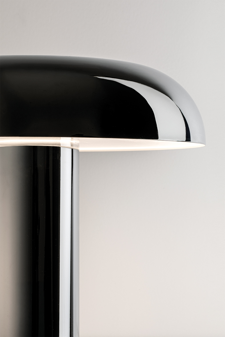 Lampada da tavolo con modulo LED 16W, 3000K ideale per comò, madie, scrivanie o accanto al sofà, diventando immediatamente il fulcro visivo dell’ambiente. Illuminazione uniforme, priva di abbagliamento diretto, pensata per accompagnare momenti di relax, lettura o conversazione. Superfici cromate e dettagli curati trasformano Noxa in un oggetto raffinato, capace di riflettere l’ambiente e amplificarne la luminosità.