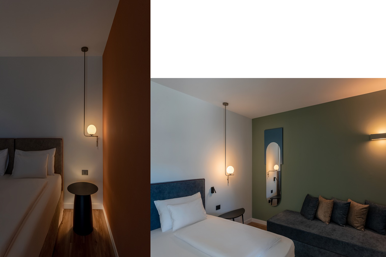 Partendo da Twin, sono state create diverse soluzioni custom e pensate ad hoc appositamente per il contesto delle camere dell’hotel che si sposano perfettamente con l’arredamento della stanza e l’architettura di tutta la struttura, per tramettere equilibrio e serenità agli ospiti e ai visitatori nel rispetto del design concept pensato per l’hotel.